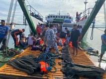 Pictures released by the coast guard showed fire engulfing the ferry and dark smoke billowing from it. Injured survivors on stretchers were taken to waiting ambulance vans while a rescuer tried to revive an unconscious survivor by pressing on his chest.