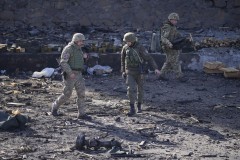 In Kyiv, a missile struck a high-rise apartment building in the southwestern outskirts near one of Kyiv’s two passenger airports, leaving a jagged hole of ravaged apartments over several floors. A rescue worker said six civilians were injured.