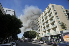 Los Angeles firefighters who first arrived at the blaze on Thursday found heavy flames on the building's top floor.