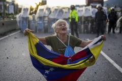 In the capital’s impoverished Petare neighborhood, people started walking and shouting against Maduro, and some masked young people tore down campaign posters of him hung on lampposts. Heavily armed security forces were standing just a few blocks away from the protest.