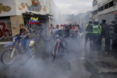 In the capital, the protests were mostly peaceful, but when dozens of riot gear-clad national police officers blocked the caravan, a brawl broke. Police used tear gas to disperse the protesters, some of whom threw stones and other objects at officers who had stationed themselves on a main avenue of an upper-class district.
