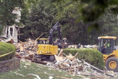 A photo posted by county officials showed several firefighters around the rubble of the home with another damaged home in the background. Charred pieces of wood were heaped on the property, and insulation and splintered wood spilled out into the street. Small pieces of debris hung from nearby trees. Later in the morning, emergency workers were seen using heavy equipment to search through the rubble.
