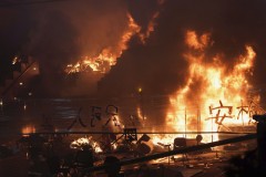 Riot officers broke in before dawn as fires raged inside and outside the school, but it was unclear how far the police got. Fiery explosions could be seen as protesters responded with catapult-launched gasoline bombs. Police, who have warned that everyone in the area could be charged with rioting, reportedly made a handful of arrests.
