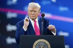 On the sidelines of the conference, Trump met with conservative Polish President Andrzej Duda amid rising tensions in Europe over Russia’s war in Ukraine. After he took the stage, Trump saluted Duda and another atendee, Argentine President Javier Milei.
