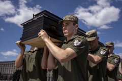 At the farewell ceremony, Ukrainian soldiers carried Fouché's coffin through Kyiv’s landmark Independence Square, the site of mass protests in 2014 that forced out a pro-Russian president, towards a memorial for the country's fallen defenders. Fouché's comrades held back tears as they lined up to say goodbye. Mourners read prayers as they held up Ukrainian flags and military banners.