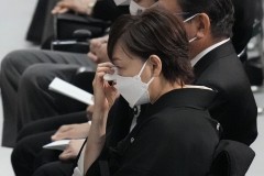It began with Abe's widow, Akie Abe, in a black formal kimono, walking slowly behind Kishida into the funeral venue, carrying an urn in a wooden box wrapped in a purple cloth with gold stripes. Soldiers in white uniforms took Abe’s ashes and placed them on a pedestal filled with white and yellow chrysanthemums and decorations.