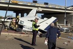 The Piper PA-31 with just the pilot aboard crashed about 3 p.m. near a highway overpass in Victoria, some 150 miles (240 kilometers) southwest of Houston, the Federal Aviation Administration said. A police video statement on Facebook said three vehicles were damaged and images showed the aircraft split at the fuselage with part of the wreckage resting atop a car.