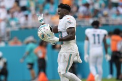 Hill starred on the field for the Dolphins, catching seven passes for 130 yards — including an 80-yard touchdown that helped Miami rally for a 20-17 win over the Jacksonville Jaguars. Hill celebrated the score by mimicking being handcuffed.