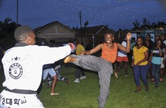 Others painted their faces, ate barbecued goat, played chess and practiced yoga. The good-natured gathering attracted scores of people in support of the day when all of Africa would be free of armed violence.