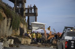 The beach was filled with people at the time of the collapse. A KNSD-TV helicopter captured footage of beach chairs, towels, surf boards and beach toys strewn about the sand.