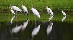 Their bald heads give wood storks an almost prehistoric appearance, leading to nicknames such as “stonehead” and “flinthead.” Wood storks feed in shallow waters on fish, insects, frogs and crabs depending on whether it's wet or dry season. They are the only stork native to North America.