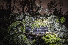 Video showed several large trees downed and damage to homes and vehicles in the path of the storm. Some gas leaks were reported in Naperville, and crews went door to door shutting off lines, she said.
