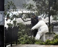 A man in his 70s died apparently after being blown to the ground from his apartment in Osaka prefecture, while a 71-year-old man died when a storage building collapsed on him, officials said.