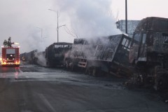 Another 22 people were injured and 38 trucks and 12 passenger cars were destroyed by fire, the statement said.