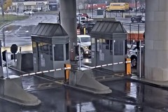 Security camera video showed the Bentley race through an intersection, hit a low median and vault high into the air just east of the bridge's main vehicle checkpoint. The car flew for yards (meters) and crashed into a line of checkpoint booths outside the camera’s view.