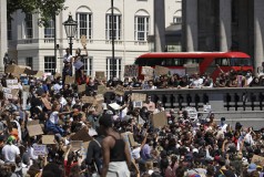 Thousands gathered in central London on Sunday to offer support for American demonstrators. Chanting "No justice! No peace!" and waving placards with the words “How many more?” at Trafalgar Square, the protesters ignored U.K. government rules banning crowds because of the pandemic. Police didn't stop them.