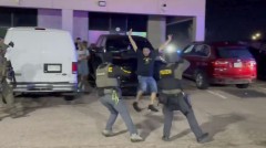 Video posted online by the Drug Enforcement Administration showed agents announcing their presence outside the building and ordering patrons to leave with their hands up. Other videos showed dozens of people fleeing the building through its entrance after federal agents smashed a window. Later, dozens of suspects were shown in handcuffs standing on a sidewalk waiting to be transported.