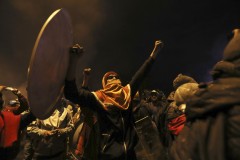 The park had filled Friday with mostly peaceful protesters chanting against the government. But by Sunday afternoon the air was white with smoke from burning tires and tear gas after more than 24 hours of clashes between police and hard-core protesters with sticks and shields of satellite dishes or plywood. Adjoining streets were piled high with burned tires, tree branches and paving stones.