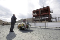 Earlier in the day, a handful of tourists in the town of Minamisanriku offered prayers at the skeletal remains of the former disaster prevention center, where 43 workers died as tsunami waves engulfed the three-story building.