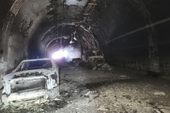 Photos distributed Sunday showed the charred remains of two vehicles inside the tunnel.