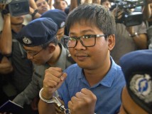 Wa Lone and Kyaw Soe Oo were arrested Dec. 12 after police accused them of violating the colonial-era law by acquiring "important secret papers" from two policemen. The police officers had worked in Rakhine state, where security forces are blamed for rights abuses against Rohingya Muslims that sparked the exodus of some 650,000 people to Bangladesh.