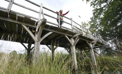 The original bridge was dismantled and stored in Ashdown Forest Centre in the southern county of East Sussex, until the local Parish Council recently gave permission for it to be restored and rescued. The bridge, which measures 8.87 meters long by 4.5 meters wide (29 feet by 15 feet), has now been fully restored using local oak for any missing elements.