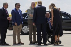 The president and first lady Melania Trump flew to El Paso late in the day after visiting the Dayton hospital where many of the victims of Sunday's attack in that city were treated. The president was kept out of view of the reporters traveling with him, but White House Press Secretary Stephanie Grisham said the couple met with hospital staff and first responders and spent time with wounded survivors and their families.