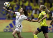 Tobin Heath dribbled in front of Andersson then blasted an angled shot in the 50th minute from eight yards out that went over goalkeeper Hedvig Lindahl at the near post. The goal was reviewed by VAR after it appeared Lloyd was offside. It was later determined to have come off Andersson for an own goal.