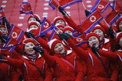 They joined thousands of others at a women's hockey game, waving their unified Korean flags — white rectangles with the light-blue silhouette of the Korean Peninsula, the North and South together.