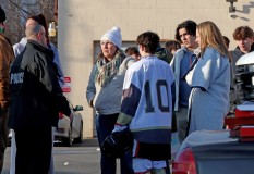 Outside the arena, tearful families and high school hockey players still in uniform could be seen hugging before they boarded a bus to leave the area. Roads surrounding the arena were shut down as a heavy police presence remained and helicopters flew overhead.