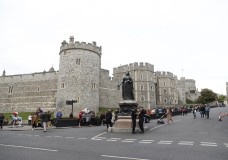 The Duke and Duchess of Sussex posed with their son for cameras at Windsor Castle — the first in a lifetime of photo calls for the two-day-old baby, who is seventh in line to the throne.