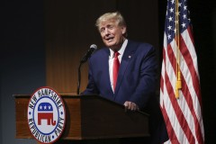 In his speech, he hurtled from criticism of Biden and Democrats to disparaging comments about transgender people, mockery of people promoting the use of electric stoves and electric cars, and reminiscing about efforts while serving as president to increase oil production, strike trade deals and crack down on migration at the U.S-Mexico border.