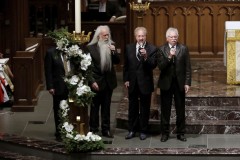 There were rousing renditions of the "Battle Hymn of the Republic" and "Onward Christian Soldiers," and also some of Bush's country favorites. The Oak Ridge Boys recalled performing for him for decades — sometimes at the White House — and joked that Bush "fancied himself to be a good bass singer. He was not." They then sang "Amazing Grace," and Reba McEntire offered a musical version of "The Lord's Prayer."