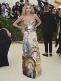 Kate Bosworth's pearl-encrusted veil draped over a shimmering tulle gown by Oscar de la Renta, while Mindy Kaling wore a regal, jeweled crown with a feminine silver gown and navy gloves. Kaling stars in the upcoming "Ocean's 8," a jewelry heist romp set at the Met Gala.