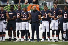 All of the players on each team at New England appeared to stand for the national anthem, some bowing their heads and others placing their hands on their hearts. The Patriots observed a moment of silence beforehand for Weymouth, Massachusetts, police officer Michael Chesna, who was killed last month in the line of duty.