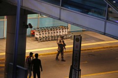 Hundreds of passengers were spilling out of the airport with their suitcases in hand or stacked onto trolleys. Others were sitting on the grass, their bodies lit by the flashing lights of ambulances and police cars.