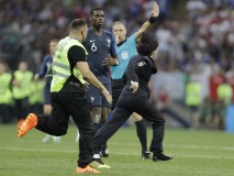 Before being hauled away, one woman managed to reach the center of the field and share a double high-five with France forward Kylian Mbappe, who had a shot saved a minute earlier.