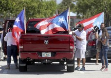 WEST PALM BEACH, Fla. (AP) — Dozens of vehicles slowly approached President Donald Trump's Mar-a-Lago resort in Florida on Saturday afternoon, blasting reggaeton and salsa as they drove by. They honked their horns and waved Puerto Rican flags draped from their car windows and trunks. They were on their way to a rally a few miles away to mark the one-year anniversary of Hurricane Maria.