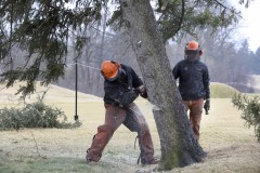 The Black Hills spruce known as “The Hinkle Tree” was partially uprooted by a gust of wind this week at Inverness Club in Toledo, Ohio, and was cut down.