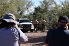 Photographers take images of sheriff's deputies outside the home of Nancy Guthrie in Tucson, Ariz., Sunday, Feb. 22, 2026. (AP Photo/Felicia Fonseca)   (Associated Press)