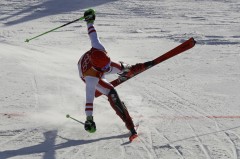 Hirscher stretched toward the finish line in a star shape with his left ski high off the snow. He briefly raised both his arms then skied directly out of the finish area with a business-like expression on his face to await Pinturault's start two minutes later.
