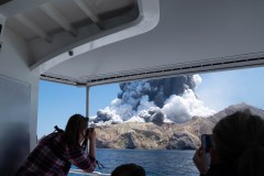 Geoff Hopkins was in a boat offshore after visiting the island with his daughter, the tour a 50th birthday present for him. He told the New Zealand Herald the eruption at first looked beautiful but quickly turned menacing.