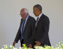Obama greeted Sanders as he arrived at the White House and the two walked past the sun-bathed Rose Garden — and a pack of snapping cameras — to their private meeting.