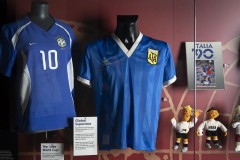 The blue shirt with stripes of lighter blue was a one-off, hastily assembled because the tops Argentina's team planned to wear were judged too heavy for the Mexico City heat. The Argentinian Football Association patches were sewn on, and sparkly numbers, including Maradona’s 10, were ironed onto the back shortly before the match