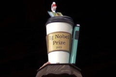 In order to keep the tradition of real Nobel Prize winners handing out the Ig Nobels, organizers came up with a bit of video wizardry. Each winner was mailed a document that they could print out that included instructions on how to assemble their own cube-shaped prize. To make it look as if the real Nobel laureates were handing them out, they handed their prizes off screen, and the winner reached off screen to pull in the one they had self-assembled.