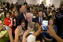 Sanders drew cheers from union workers at the casino hotel's cafeteria. He shook hands and posed for photos and asked workers if they planned to attend the caucuses.
