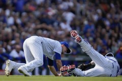 CHICAGO (AP) — Drew Smyly and Yan Gomes tumbled to the grass under a sunny sky at a picturesque Wrigley Field. Reclining on his side for one brief moment, Smyly grinned.