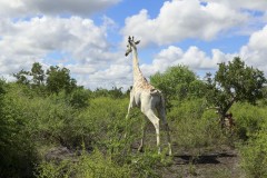 A rare genetic trait called leucism causes the white color, and it makes the one surviving giraffe stand out dangerously for poachers in the arid savannah near the Somalia border.
