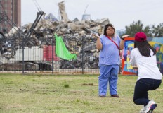 In the meantime, the tower drew hundreds of people who took often-whimsical photographs of themselves with the tower in the background.