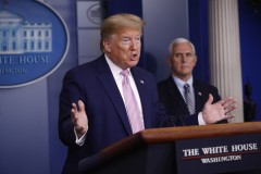 Joining Trump were Vice President Mike Pence, virus task force coordinator Dr. Deborah Birx, and Dr. Anthony Fauci, the U.S. government’s foremost infection disease expert. Each stood far apart from one another on the small stage.